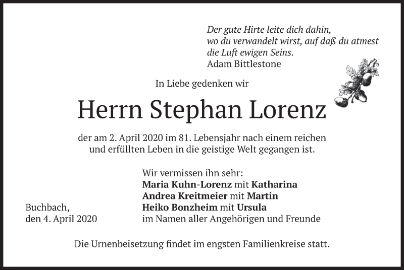Hier finden Sie alle Traueranzeigen aus der Zeitung, die bisher für Stephan Lorenz erschienen sind. Weitere Traueranzeigen, die in der Zeitung erscheinen, werden hier ebenfalls aufgelistet