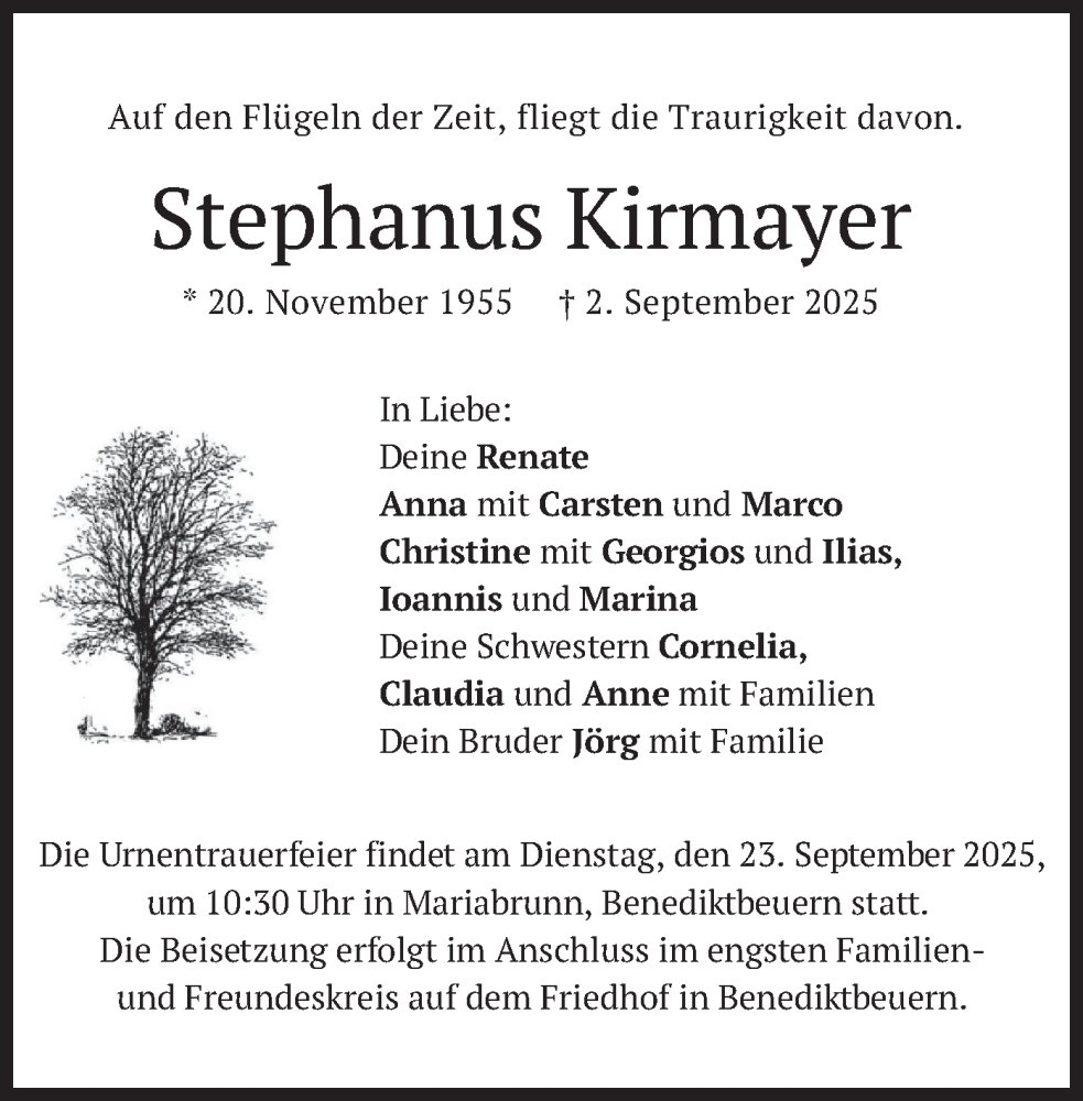 Hier finden Sie alle Traueranzeigen aus der Zeitung, die bisher für Stephanus Kirmayer erschienen sind. Weitere Traueranzeigen, die in der Zeitung erscheinen, werden hier ebenfalls aufgelistet