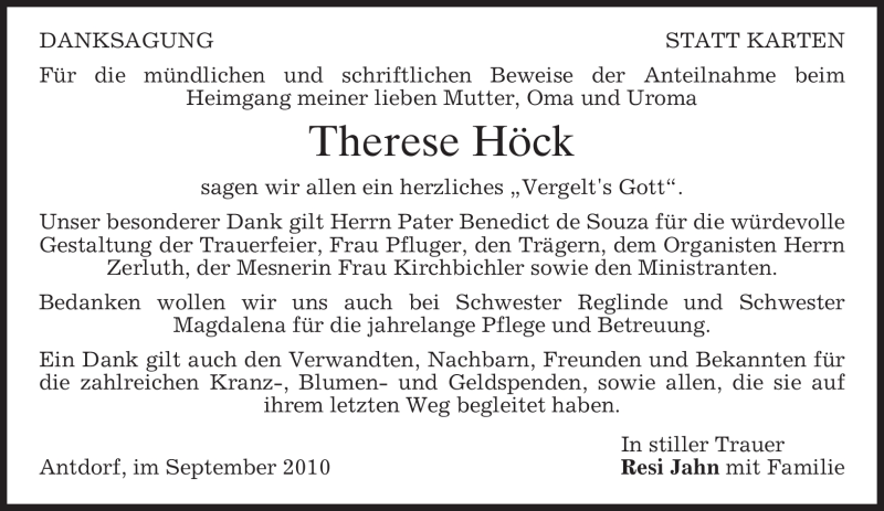 Hier finden Sie alle Traueranzeigen aus der Zeitung, die bisher für Therese Höck erschienen sind. Weitere Traueranzeigen, die in der Zeitung erscheinen, werden hier ebenfalls aufgelistet