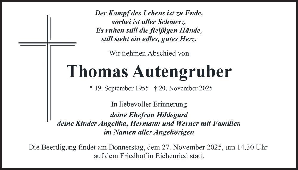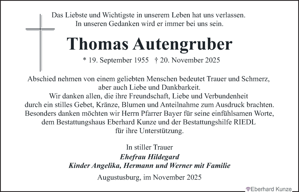 Hier finden Sie alle Traueranzeigen aus der Zeitung, die bisher für Thomas Autengruber erschienen sind. Weitere Traueranzeigen, die in der Zeitung erscheinen, werden hier ebenfalls aufgelistet