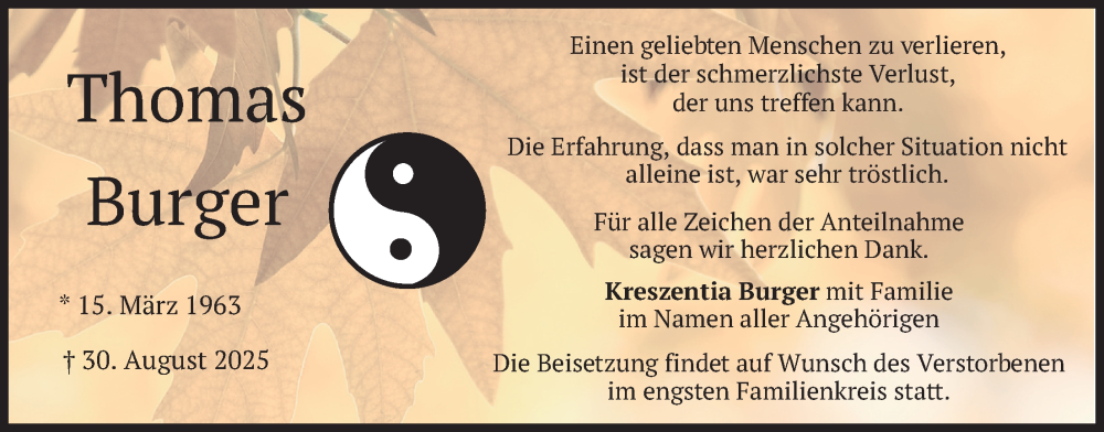 Hier finden Sie alle Traueranzeigen aus der Zeitung, die bisher für Thomas Burger erschienen sind. Weitere Traueranzeigen, die in der Zeitung erscheinen, werden hier ebenfalls aufgelistet