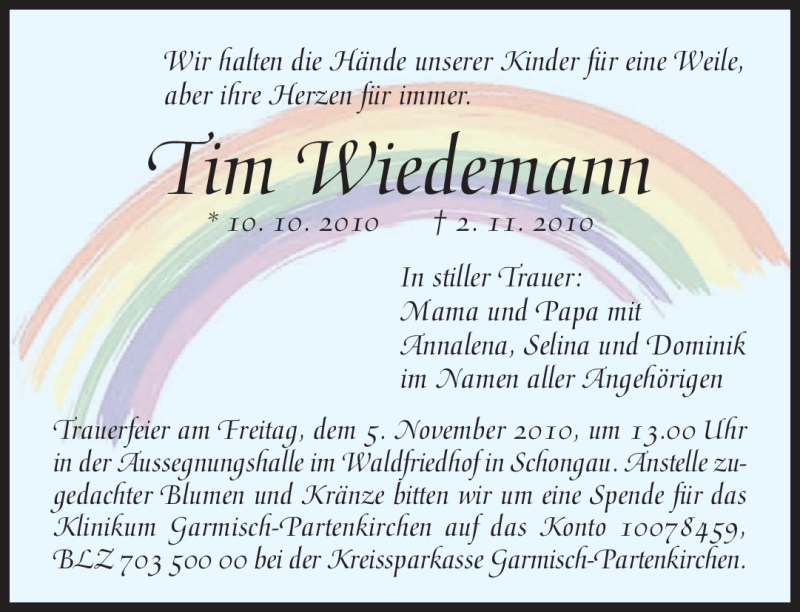 Hier finden Sie alle Traueranzeigen aus der Zeitung, die bisher für Tim Wiedemann erschienen sind. Weitere Traueranzeigen, die in der Zeitung erscheinen, werden hier ebenfalls aufgelistet