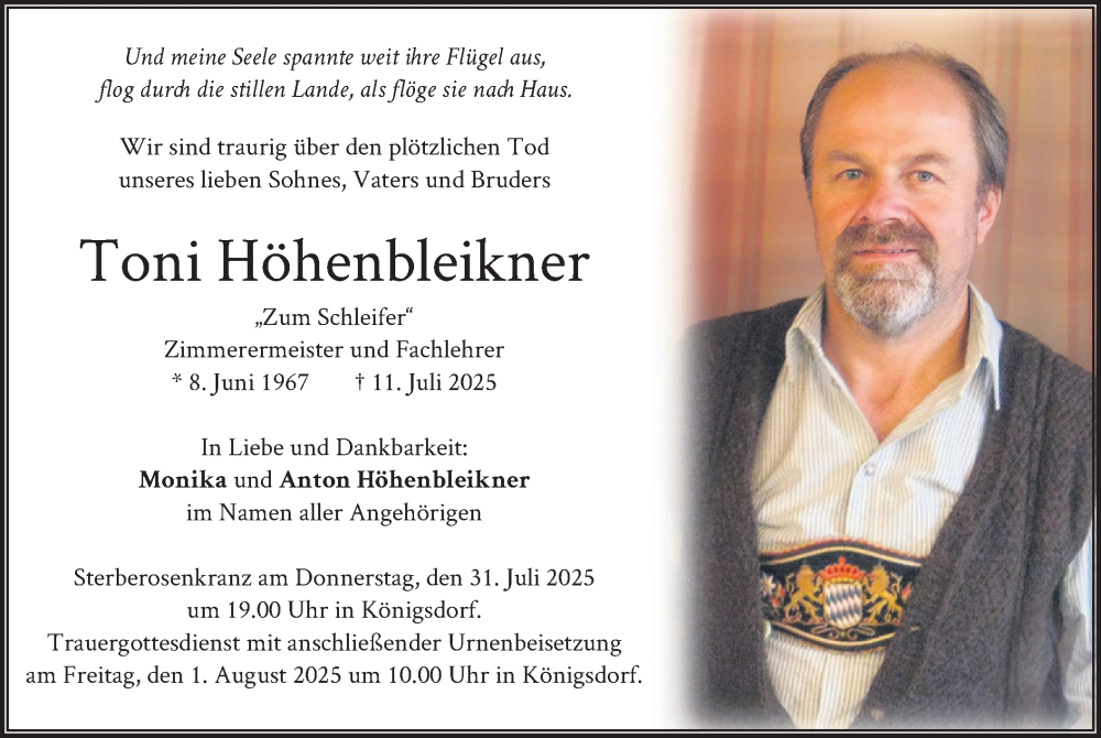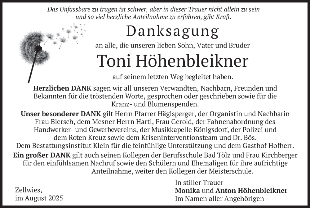 Hier finden Sie alle Traueranzeigen aus der Zeitung, die bisher für Toni Höhenbleikner erschienen sind. Weitere Traueranzeigen, die in der Zeitung erscheinen, werden hier ebenfalls aufgelistet