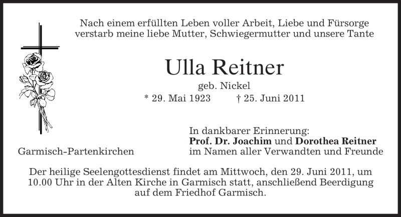 Hier finden Sie alle Traueranzeigen aus der Zeitung, die bisher für Ulla Reitner erschienen sind. Weitere Traueranzeigen, die in der Zeitung erscheinen, werden hier ebenfalls aufgelistet