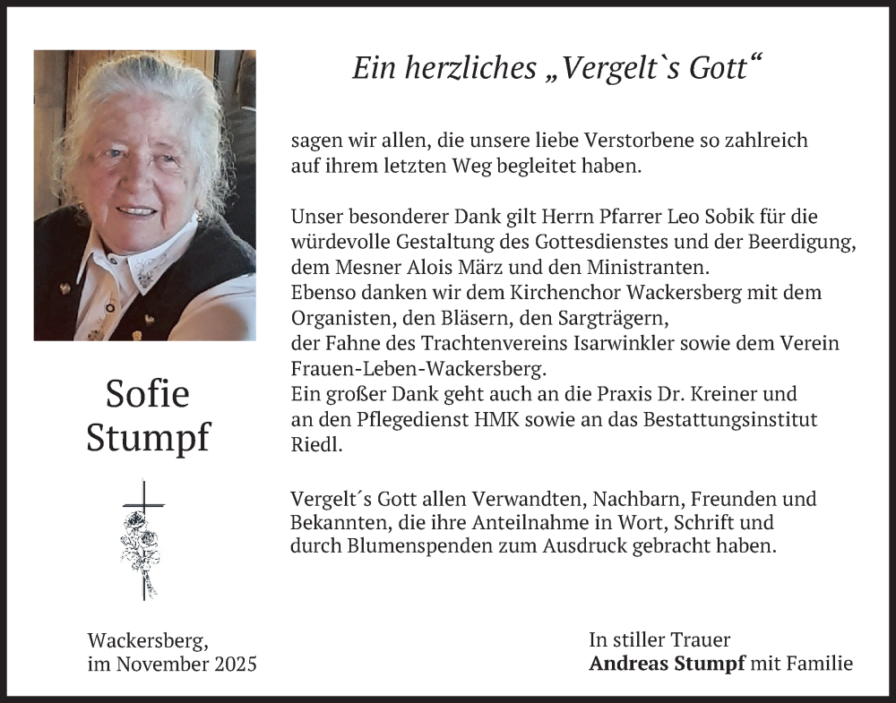 Hier finden Sie alle Traueranzeigen aus der Zeitung, die bisher für Sofie Stumpf erschienen sind. Weitere Traueranzeigen, die in der Zeitung erscheinen, werden hier ebenfalls aufgelistet