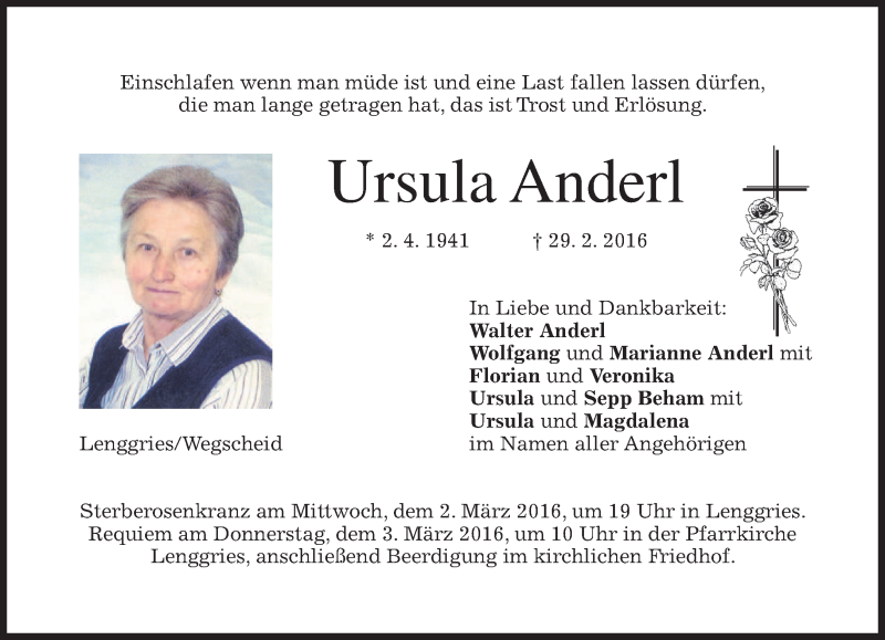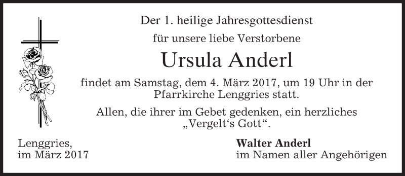 Hier finden Sie alle Traueranzeigen aus der Zeitung, die bisher für Ursula Anderl erschienen sind. Weitere Traueranzeigen, die in der Zeitung erscheinen, werden hier ebenfalls aufgelistet