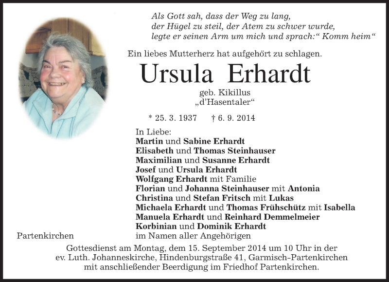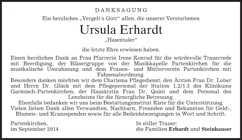 Hier finden Sie alle Traueranzeigen aus der Zeitung, die bisher für Ursula Erhardt erschienen sind. Weitere Traueranzeigen, die in der Zeitung erscheinen, werden hier ebenfalls aufgelistet