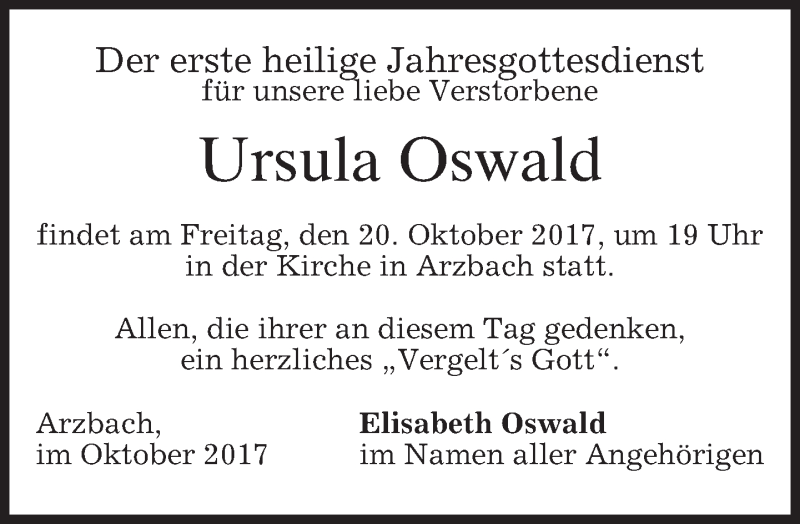 Hier finden Sie alle Traueranzeigen aus der Zeitung, die bisher für Ursula Oswald erschienen sind. Weitere Traueranzeigen, die in der Zeitung erscheinen, werden hier ebenfalls aufgelistet