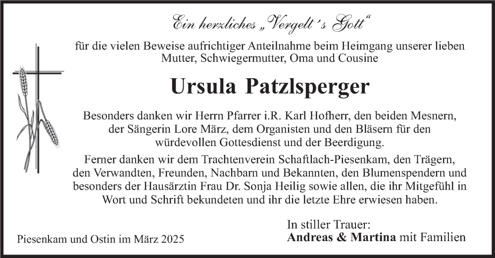 Hier finden Sie alle Traueranzeigen aus der Zeitung, die bisher für Ursula Patzlsperger erschienen sind. Weitere Traueranzeigen, die in der Zeitung erscheinen, werden hier ebenfalls aufgelistet
