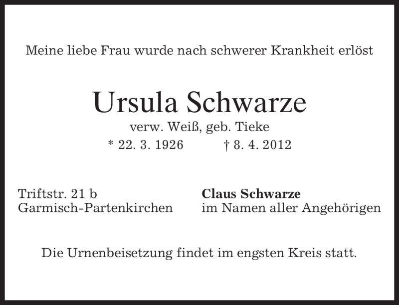 Hier finden Sie alle Traueranzeigen aus der Zeitung, die bisher für Ursula Schwarze erschienen sind. Weitere Traueranzeigen, die in der Zeitung erscheinen, werden hier ebenfalls aufgelistet