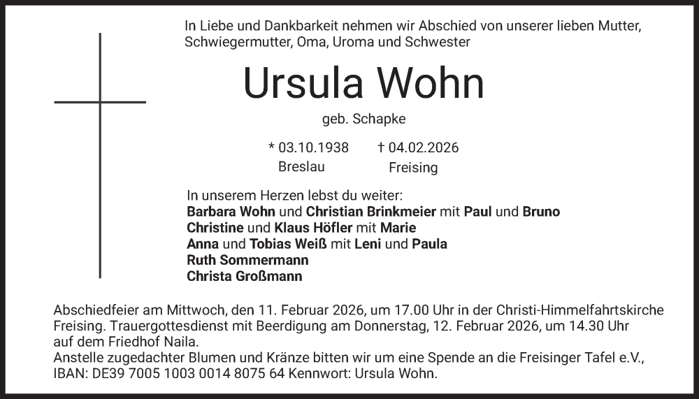 Hier finden Sie alle Traueranzeigen aus der Zeitung, die bisher für Ursula Wohn erschienen sind. Weitere Traueranzeigen, die in der Zeitung erscheinen, werden hier ebenfalls aufgelistet