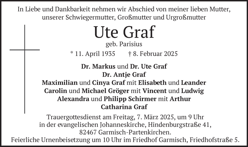 Hier finden Sie alle Traueranzeigen aus der Zeitung, die bisher für Ute Graf erschienen sind. Weitere Traueranzeigen, die in der Zeitung erscheinen, werden hier ebenfalls aufgelistet