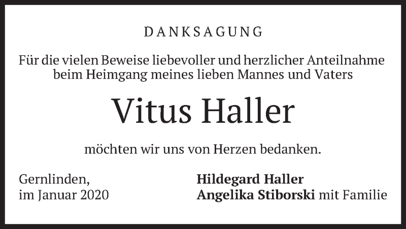 Hier finden Sie alle Traueranzeigen aus der Zeitung, die bisher für Vitus Haller erschienen sind. Weitere Traueranzeigen, die in der Zeitung erscheinen, werden hier ebenfalls aufgelistet