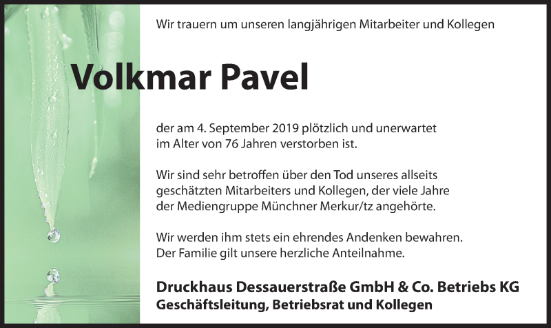 Hier finden Sie alle Traueranzeigen aus der Zeitung, die bisher für Volkmar Pavel erschienen sind. Weitere Traueranzeigen, die in der Zeitung erscheinen, werden hier ebenfalls aufgelistet