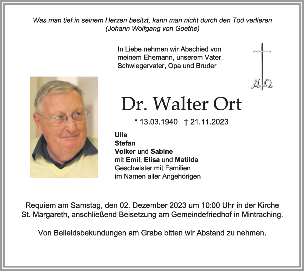 Hier finden Sie alle Traueranzeigen aus der Zeitung, die bisher für Walter Ort erschienen sind. Weitere Traueranzeigen, die in der Zeitung erscheinen, werden hier ebenfalls aufgelistet