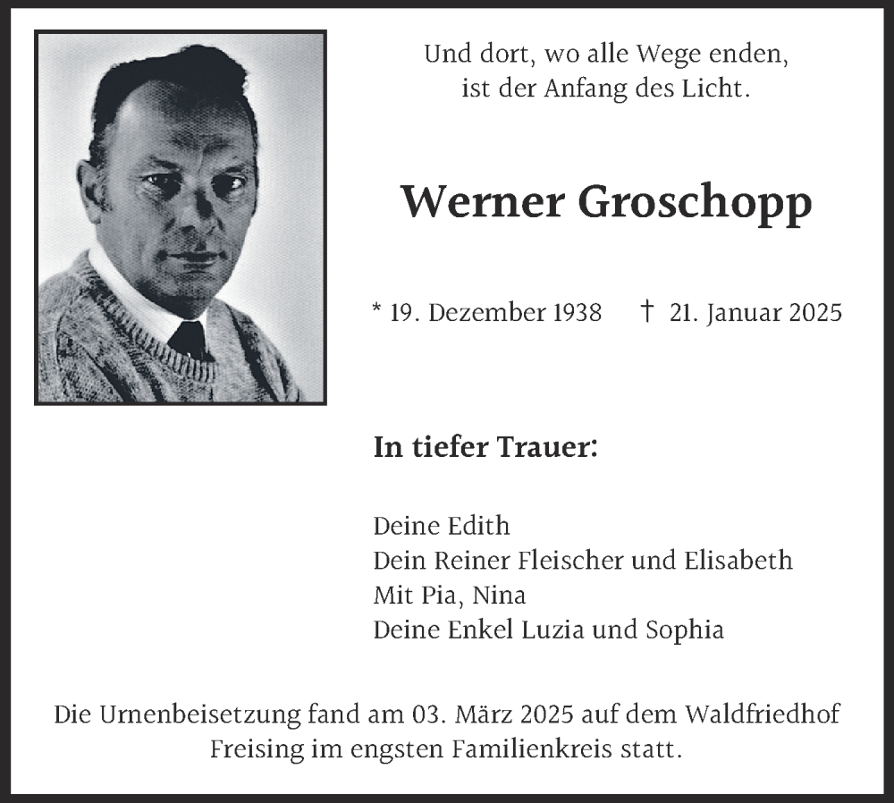 Hier finden Sie alle Traueranzeigen aus der Zeitung, die bisher für Werner Groschopp erschienen sind. Weitere Traueranzeigen, die in der Zeitung erscheinen, werden hier ebenfalls aufgelistet