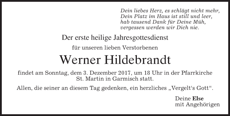 Hier finden Sie alle Traueranzeigen aus der Zeitung, die bisher für Werner Hildebrandt erschienen sind. Weitere Traueranzeigen, die in der Zeitung erscheinen, werden hier ebenfalls aufgelistet