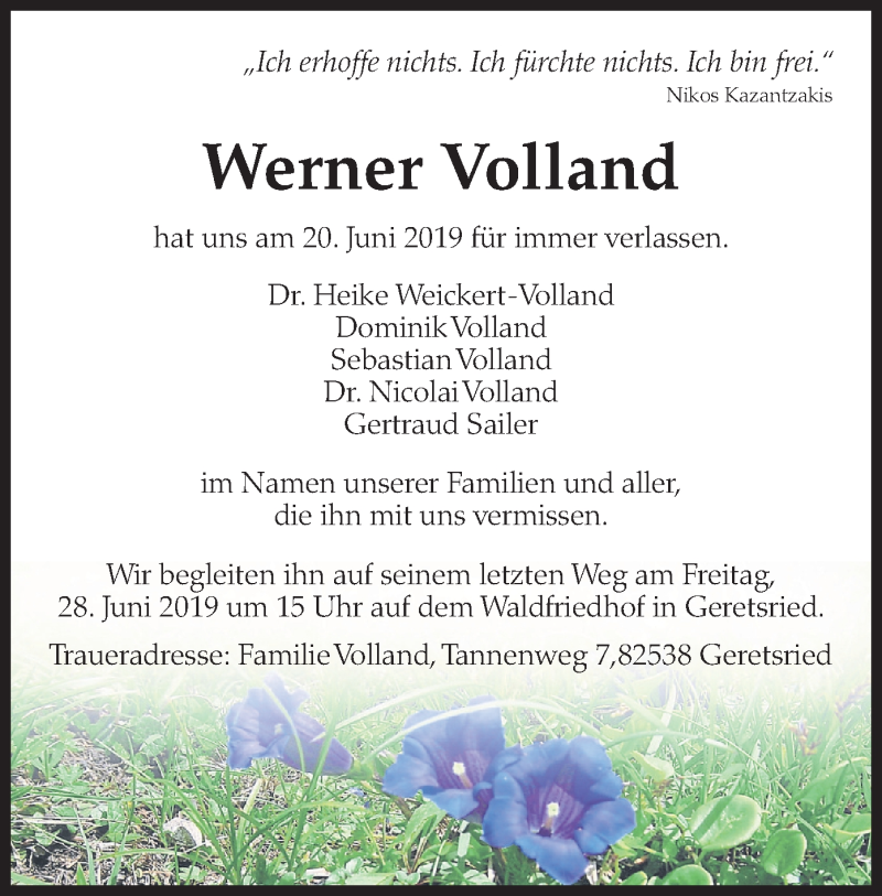 Hier finden Sie alle Traueranzeigen aus der Zeitung, die bisher für Werner Volland erschienen sind. Weitere Traueranzeigen, die in der Zeitung erscheinen, werden hier ebenfalls aufgelistet