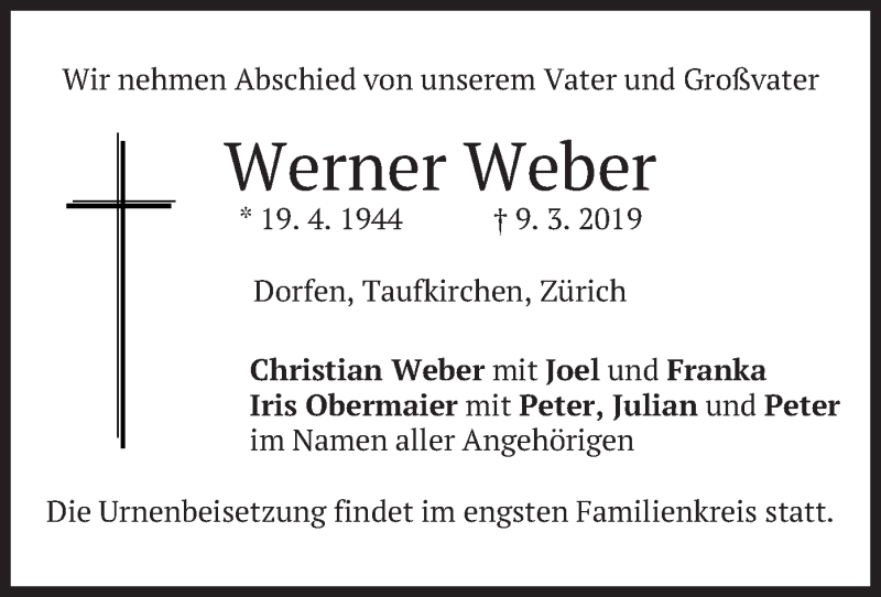 Hier finden Sie alle Traueranzeigen aus der Zeitung, die bisher für Werner Weber erschienen sind. Weitere Traueranzeigen, die in der Zeitung erscheinen, werden hier ebenfalls aufgelistet