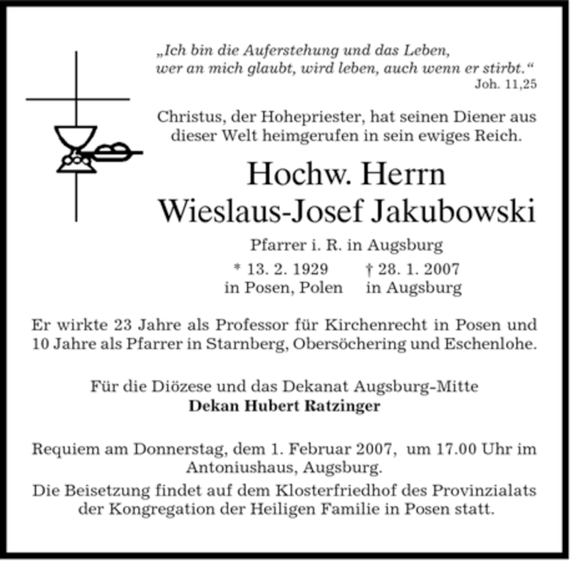 Hier finden Sie alle Traueranzeigen aus der Zeitung, die bisher für Wieslaus-Josef Jakubowski erschienen sind. Weitere Traueranzeigen, die in der Zeitung erscheinen, werden hier ebenfalls aufgelistet