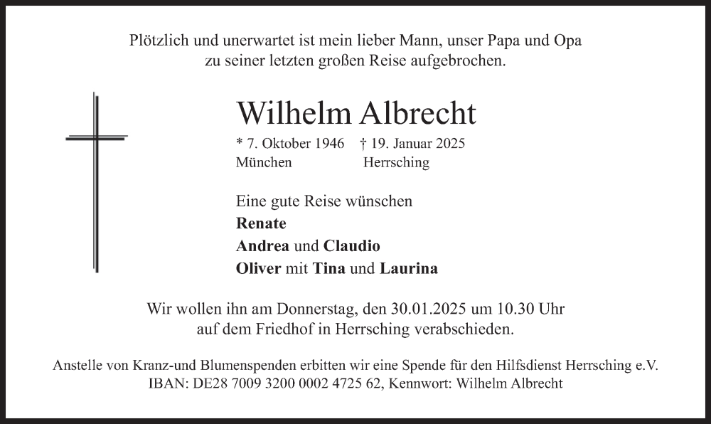 Hier finden Sie alle Traueranzeigen aus der Zeitung, die bisher für Wilhelm Albrecht erschienen sind. Weitere Traueranzeigen, die in der Zeitung erscheinen, werden hier ebenfalls aufgelistet