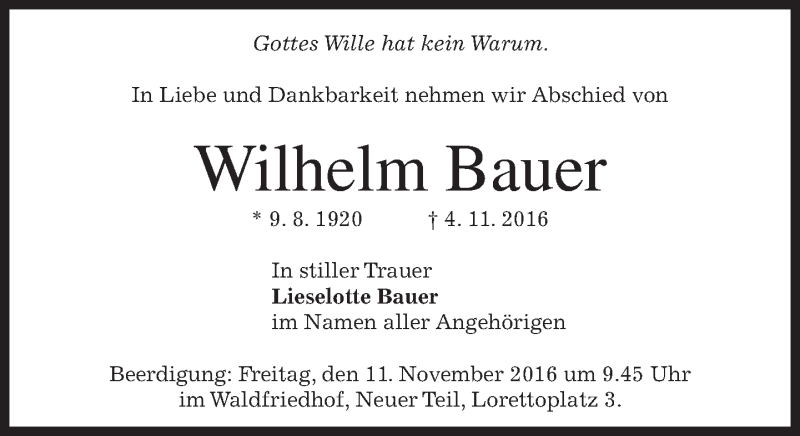 Hier finden Sie alle Traueranzeigen aus der Zeitung, die bisher für Wilhelm Bauer erschienen sind. Weitere Traueranzeigen, die in der Zeitung erscheinen, werden hier ebenfalls aufgelistet