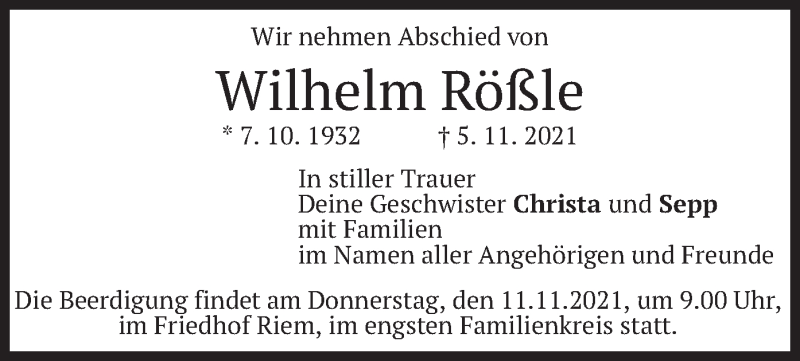 Hier finden Sie alle Traueranzeigen aus der Zeitung, die bisher für Wilhelm Rößle erschienen sind. Weitere Traueranzeigen, die in der Zeitung erscheinen, werden hier ebenfalls aufgelistet