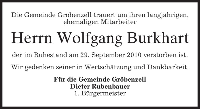 Hier finden Sie alle Traueranzeigen aus der Zeitung, die bisher für Wolfgang Burkhart erschienen sind. Weitere Traueranzeigen, die in der Zeitung erscheinen, werden hier ebenfalls aufgelistet