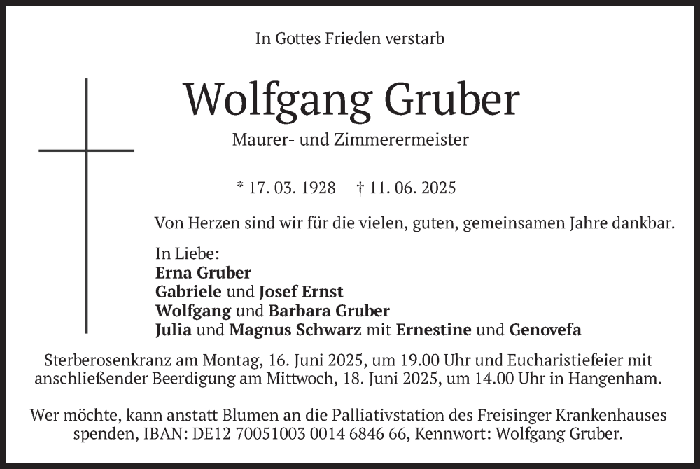 Hier finden Sie alle Traueranzeigen aus der Zeitung, die bisher für Wolfgang Gruber erschienen sind. Weitere Traueranzeigen, die in der Zeitung erscheinen, werden hier ebenfalls aufgelistet