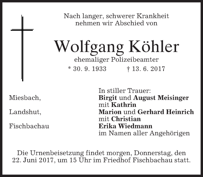 Hier finden Sie alle Traueranzeigen aus der Zeitung, die bisher für Wolfgang Köhler erschienen sind. Weitere Traueranzeigen, die in der Zeitung erscheinen, werden hier ebenfalls aufgelistet