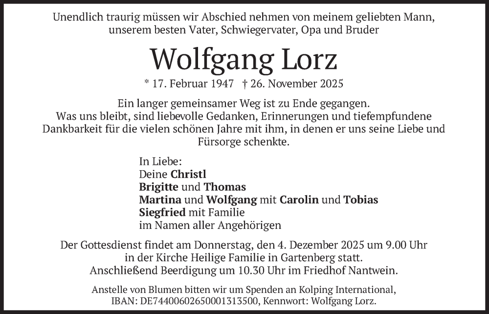 Hier finden Sie alle Traueranzeigen aus der Zeitung, die bisher für Wolfgang Lorz erschienen sind. Weitere Traueranzeigen, die in der Zeitung erscheinen, werden hier ebenfalls aufgelistet