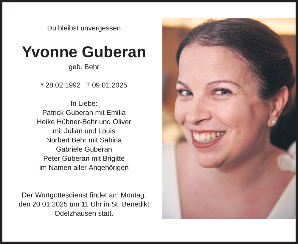 Hier finden Sie alle Traueranzeigen aus der Zeitung, die bisher für Yvonne Guberan erschienen sind. Weitere Traueranzeigen, die in der Zeitung erscheinen, werden hier ebenfalls aufgelistet