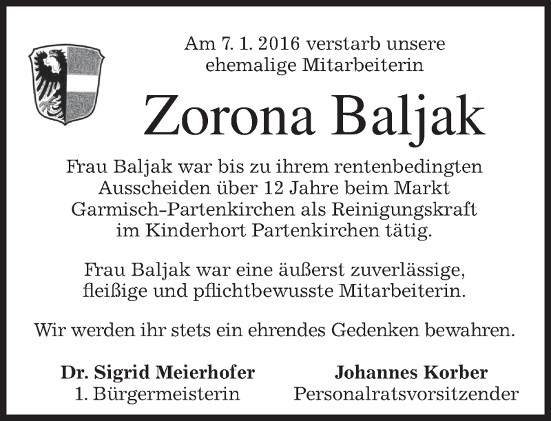 Hier finden Sie alle Traueranzeigen aus der Zeitung, die bisher für Zorona Baljak erschienen sind. Weitere Traueranzeigen, die in der Zeitung erscheinen, werden hier ebenfalls aufgelistet